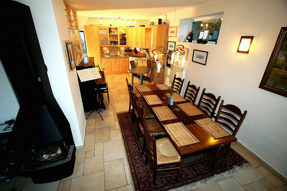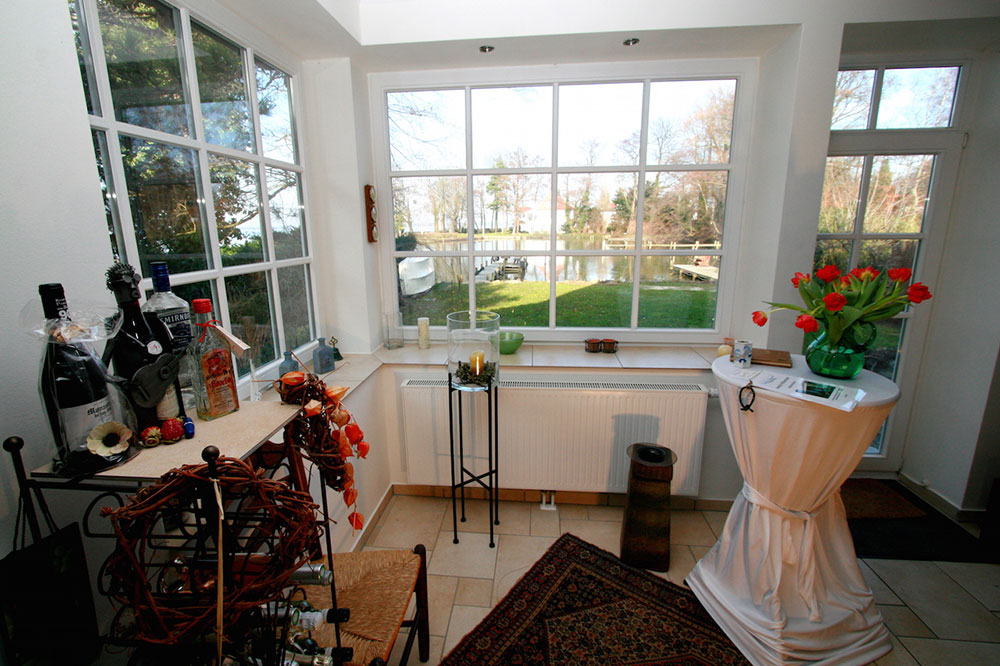 The ground floor living, dining and kitchen area is a large, open, tiled and equipped with a carpet. It has a wonderful view of the Steinhuder Meer.