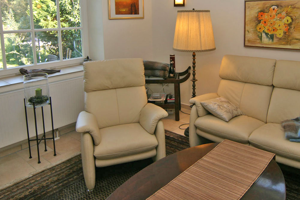 In the big living room you will find a LED television, DVD player, and stereo receiver with CD player, a radio and Bluetooth connection.